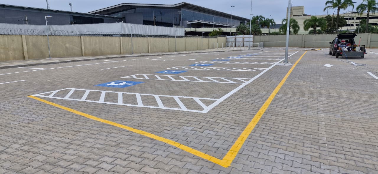 Demarcação de Vagas de Estacionamento, incluindo acessibilidade.